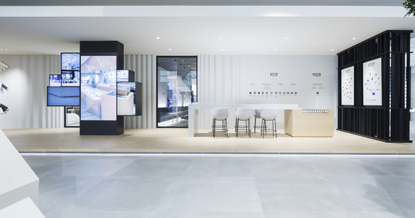 Las propiedades técnicas de Krion® lo posicionan como uno de los materiales más innovadores y funcionales para el diseño de espacios expositivos duraderos. Esto es así por su potencial para crear superficies y mobiliario personalizados, integrándose en cualquier estilo. Desde fachadas, pasando por mostradores hasta cualquier tipo de mobiliario, Krion® permite diseñar sin límites.