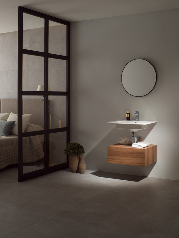 Krion Shell®, además, ofrece distintas opciones en acabados y colores, adaptándose a las necesidades estéticas y de seguridad del proyecto. Al ser un material duradero, permite su instalación en zonas de alto uso y otras superficies del baño donde el agua y la humedad son constantes.