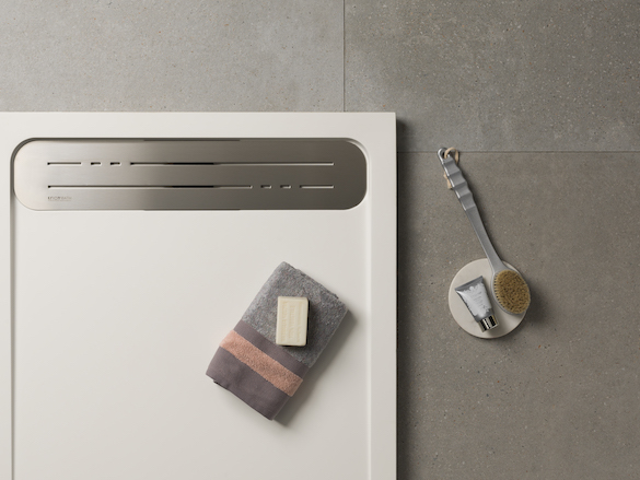 Il nuovo piatto con bordo Atrium ci immerge in un'esperienza doccia senza straripamenti.