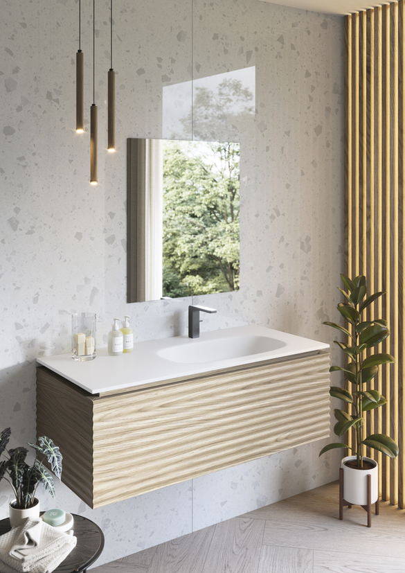 Associer des éléments organiques au design minimaliste des salles de bains est garant d'équilibre et offre un havre de tranquillité et de connexion à la nature sans avoir à sortir de chez soi.
