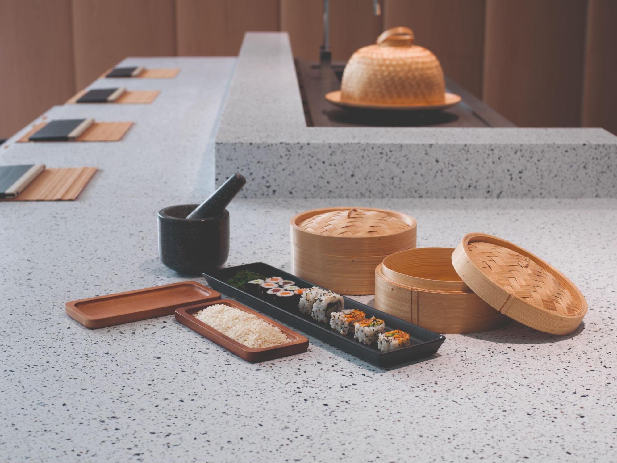 • Visual continuity: as a non-porous material, solid surface allows for joints without visible seams, creating monolithic surfaces that are ideal for wet or high-traffic areas.